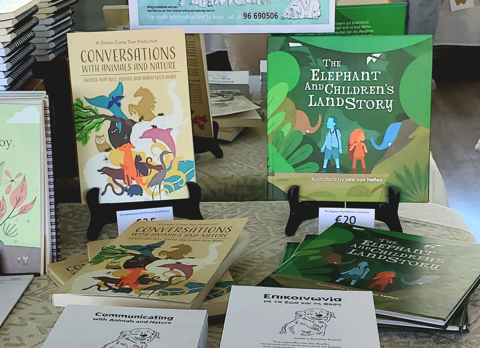 I accompanied my colleague, Christina Kimoni of Animal Communication Cyprus, teaching animal communication workshops and attending an international book fair where our books, The Elephant And Children’s Land Story and Conversations With Animals And Nature were featured.