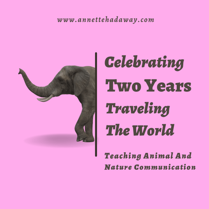It’s exciting to experience two years of traveling the world teaching animal and nature communication.